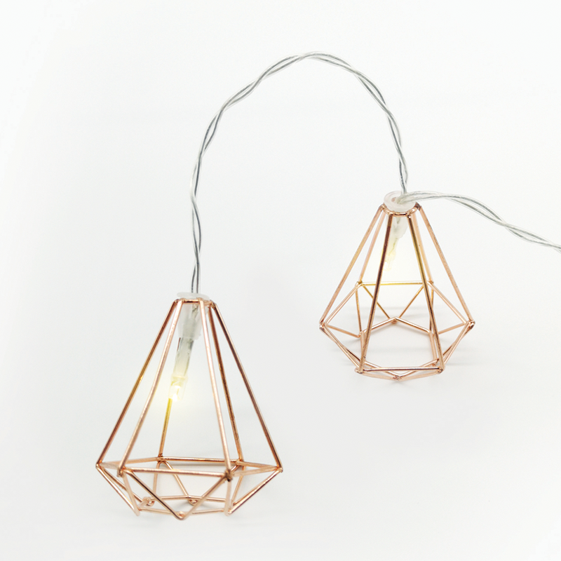 ACA Lighting FMCDIAM10WW2AT Метален диамант – 10 LED батерии 3×AA таймер (6 ON 18 OFF) топла светлина меден метал IP20 135 + 30см прозрачен кабел