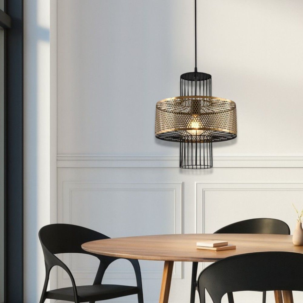 Добавете елегантност към интериора си с новата серия полилеи CASTELLO Металният разсейвател представлява перфорирана конструкция в актуална цветова комбинация от черно и злато CASTELLO създава приглушеност уют и допринася за различен стил на помещението В зависимост от търсената атмосфера можете да използвате филамент LED лампи Е27 с различна форма и мощност