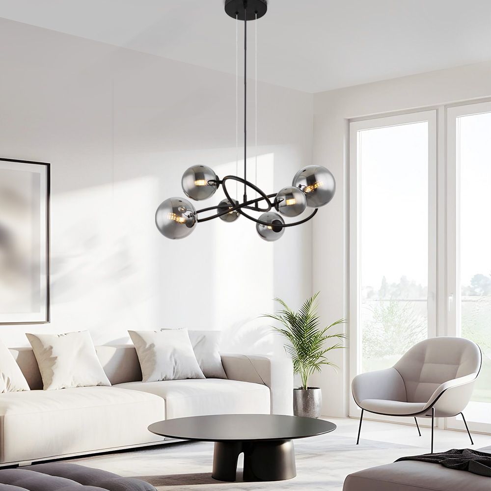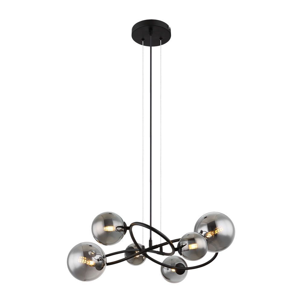 GALILEO e впечатляваща нова гама осветителни тела Серията е проектирана с различен брой стъклени опушени абажури във форма на опушени сфери с различни индивидуални размери разположени асиметрично Невероятната привлекателност на GALILEO се допълва от огледалната повърхност на стъклата която отразява пространството наоколо и превръща интериора в дизайнерско решениеСерията осветителни тела GALILEO съдържа един аплик и четири полилея като два от тях са с регулируема дължина А когато лампите в телата светят усещането за изтънченост се засилва GALILEO се предлагат в комплект с LED лампи с цокъл G9 в топлобяла светлина 3000К но са съвместими с всички G9 LED лампи с марка VIVALUX